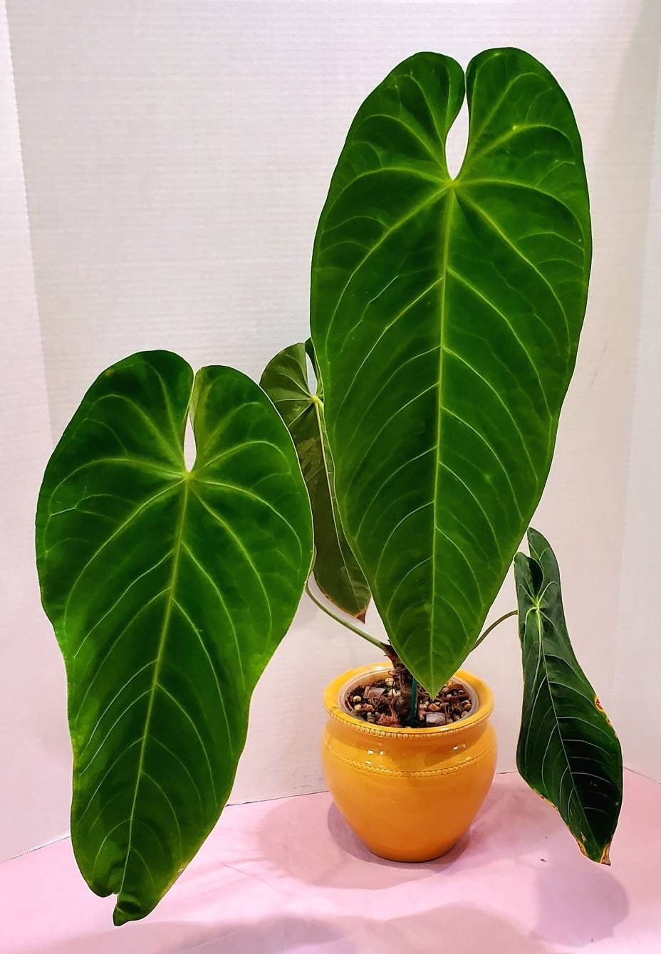 This Anthurium has long velvety leaves and is mostly grown because of this feature.
